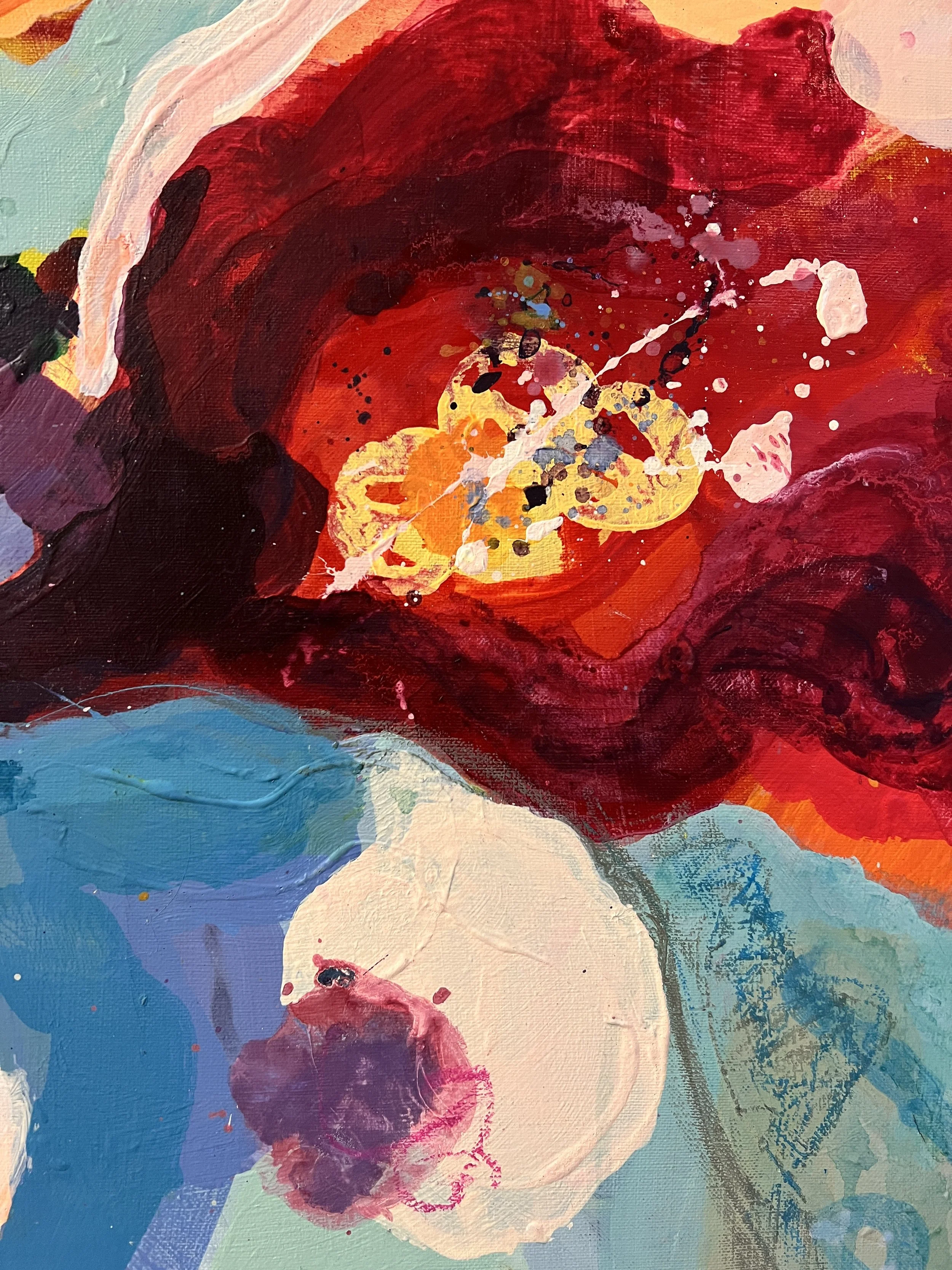 Aquarell- und Acrylfarben von Sennelier, japanische Zeichentusche und Pastellkreide auf Leinwand aus Naturleinen