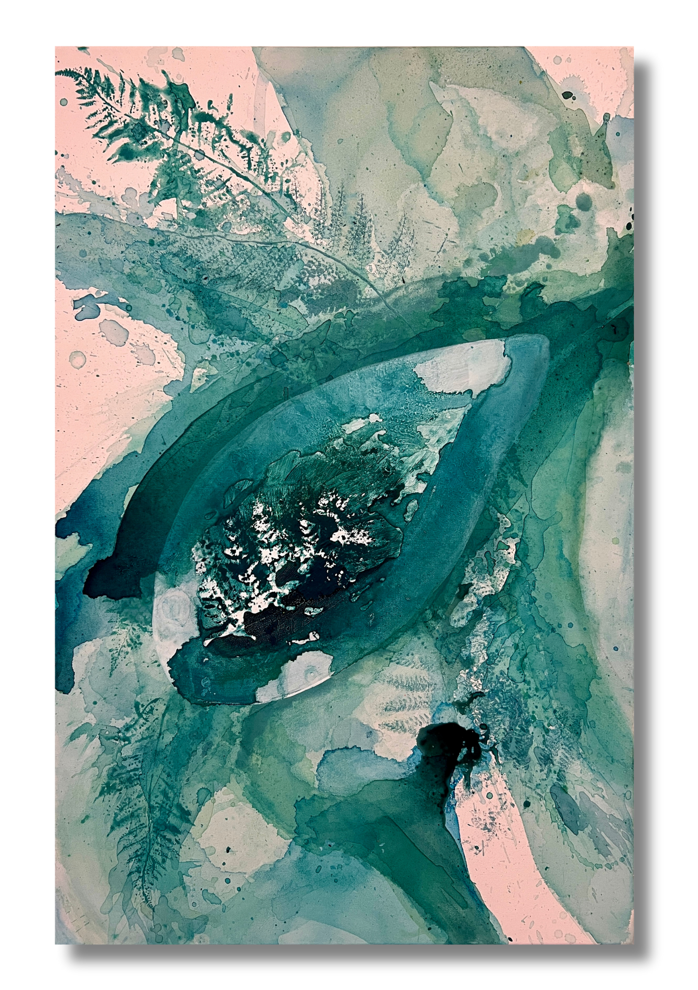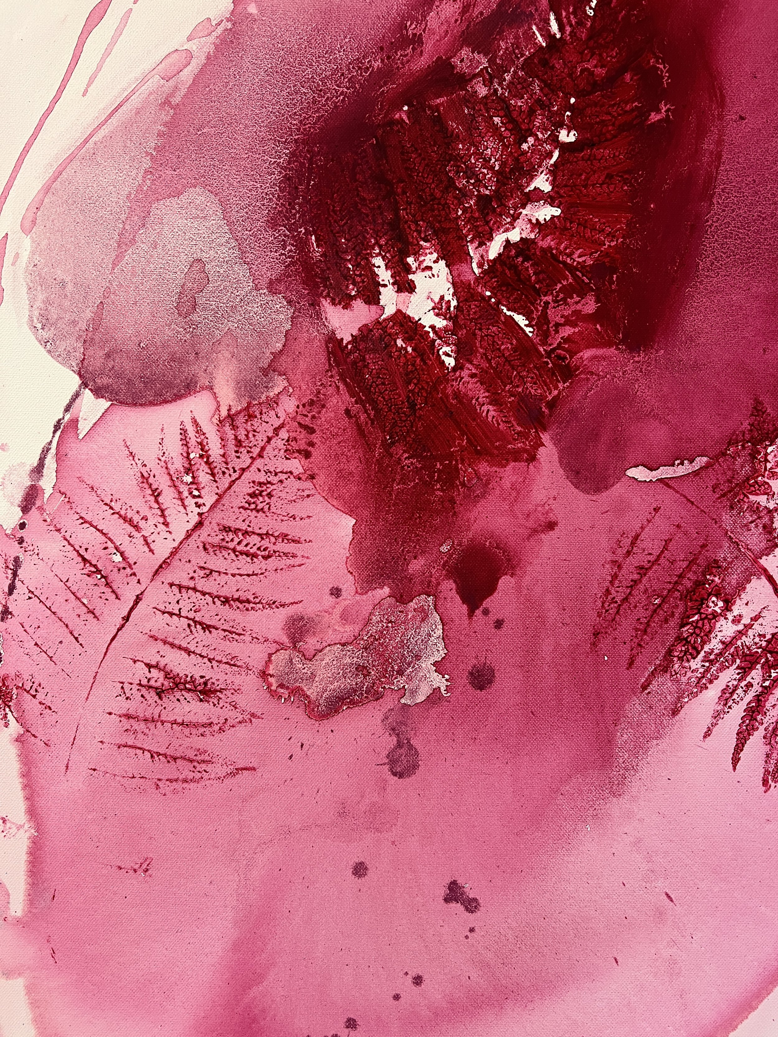 Die Farne, abstrakt und widerstandsfähig, werden zu Botschaftern der Resilienz: Sie durchziehen die Leinwand, verweben sich mit Erinnerungen, Sehnsüchten und den Echos der Seele. Die Gemälde flüstern diesen inneren, sinnlichen und spirituellen Dialog, im Schatten des Windes, wo das Leben in jeder Form, jeder Farbe, jedem Atemzug sanft und hartnäckig weiterbesteht.