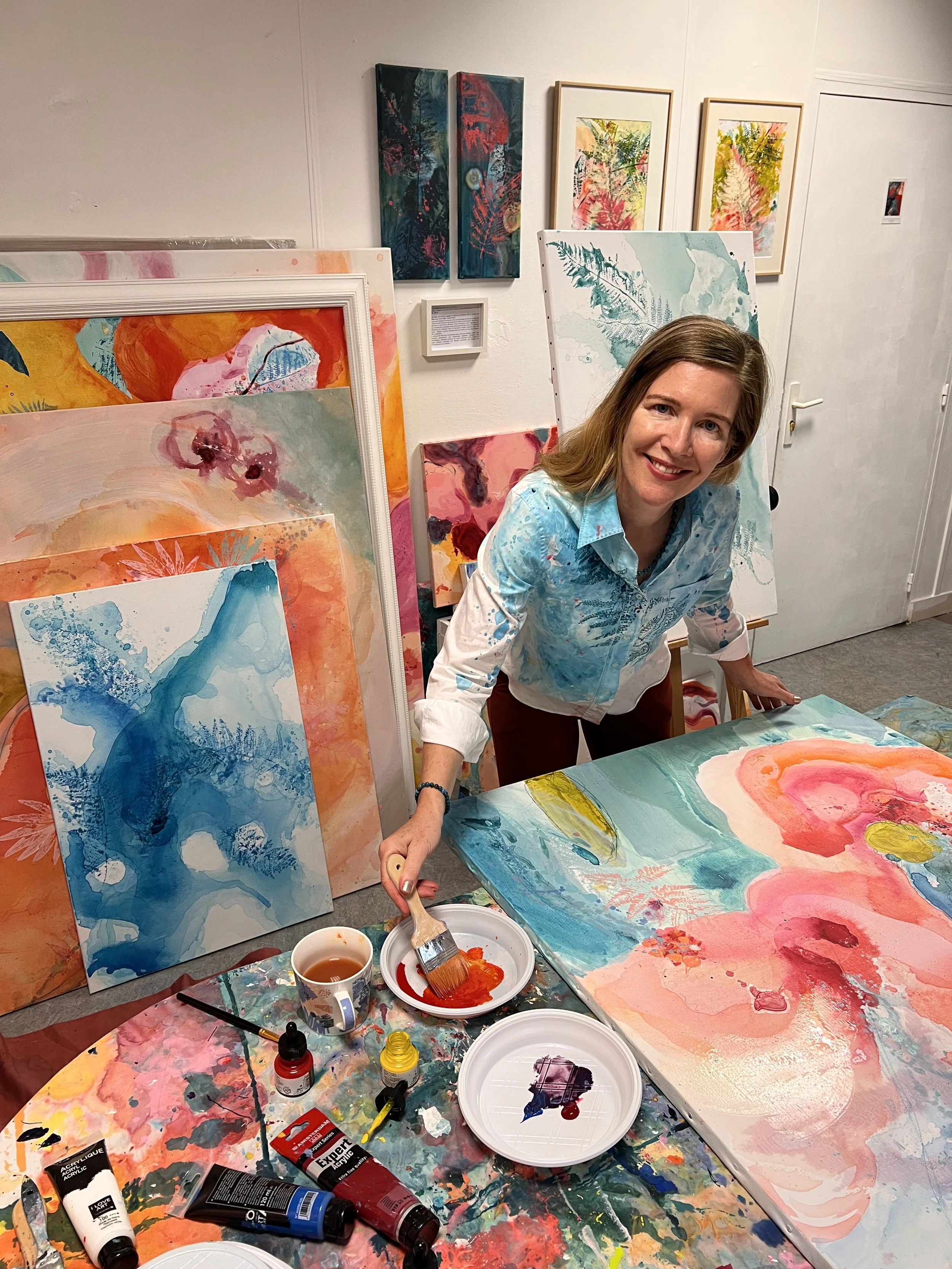Diese Werke fangen den Augenblick ein, in dem Gefühle wie flüchtige Wellen über die Seele streichen, wo Freude und Zärtlichkeit sich in sanften Farben und Formen verdichten. Die abstrakten Elemente, wie zarte, widerstandsfähige Farne, symbolisieren die innere Kraft, die uns immer wieder aufrichtet, selbst nach Enttäuschung oder Schmerz. Sie wachsen, falten sich, strahlen eine stille, beharrliche Lebensfreude aus.